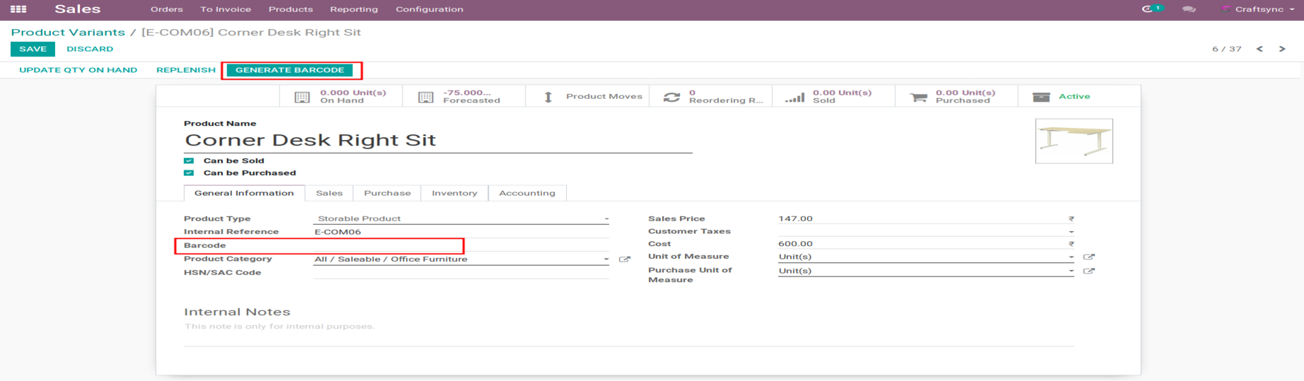 - This application provides facility to create EAN13 Random Barcode generate of product.