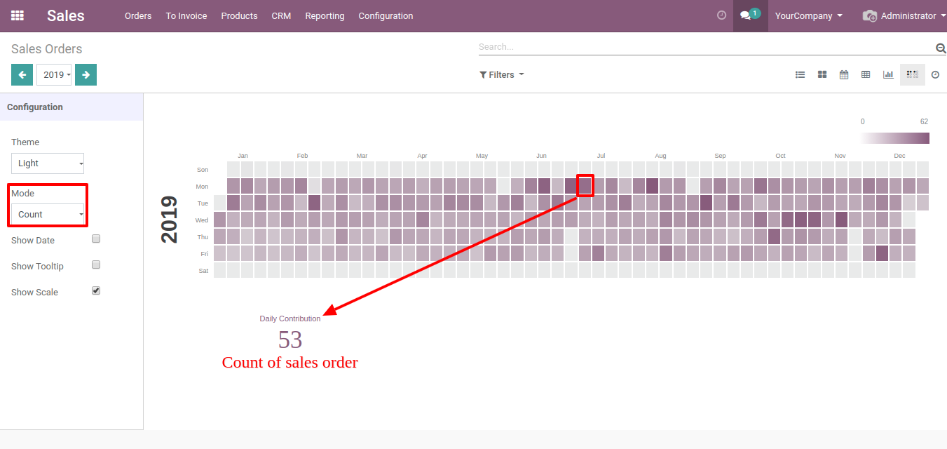 - Count Mode: Count mode shows the count of sales order for particular day.