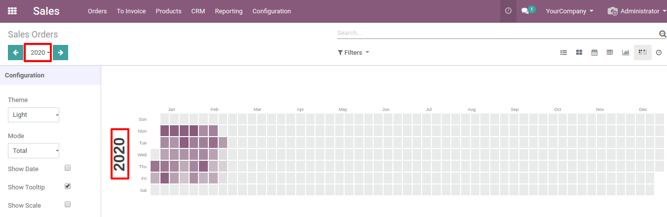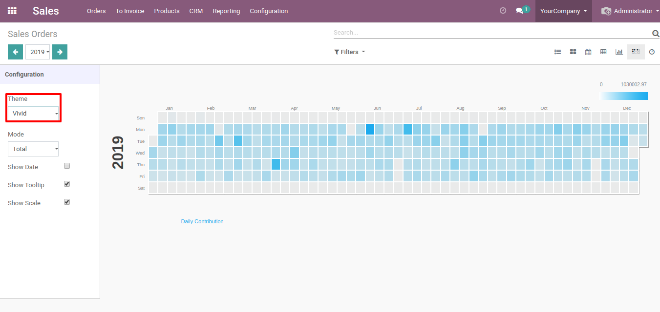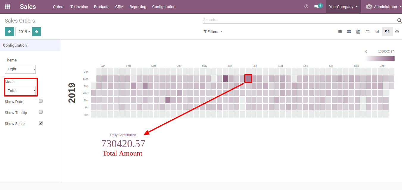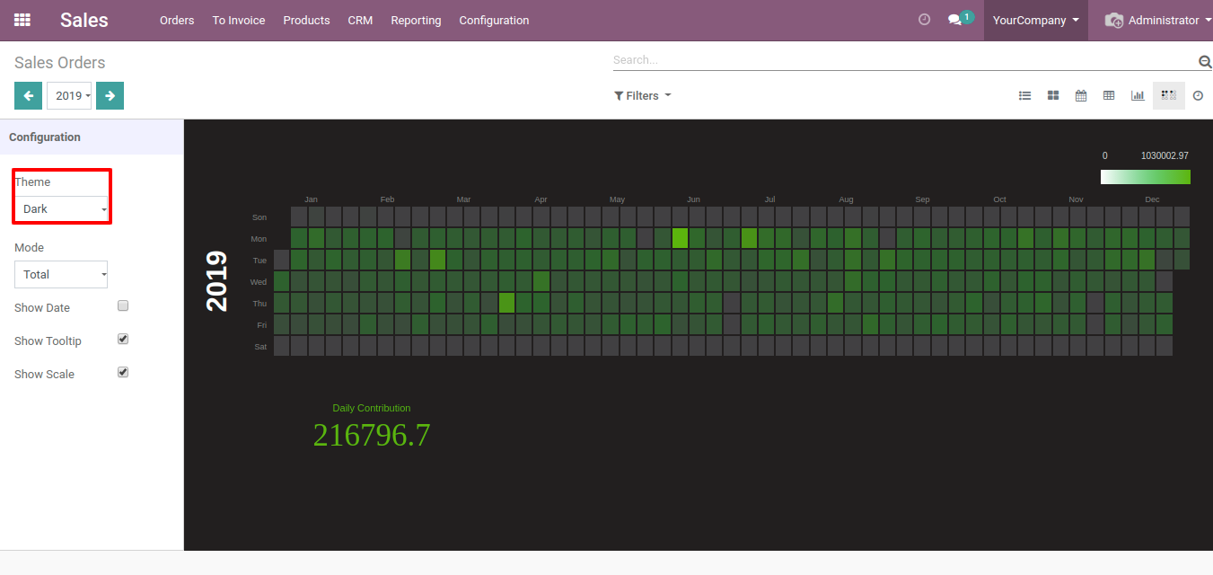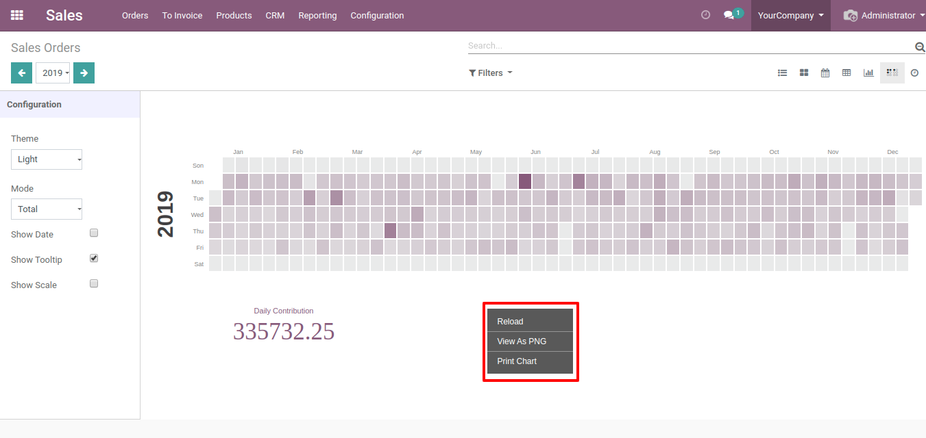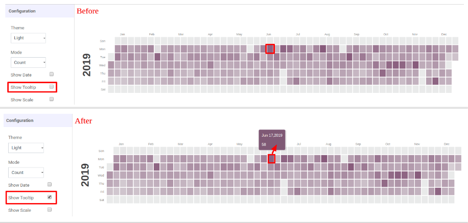 - User can easily configure show date, show tooltip, and show scale to analyse calendar chart.