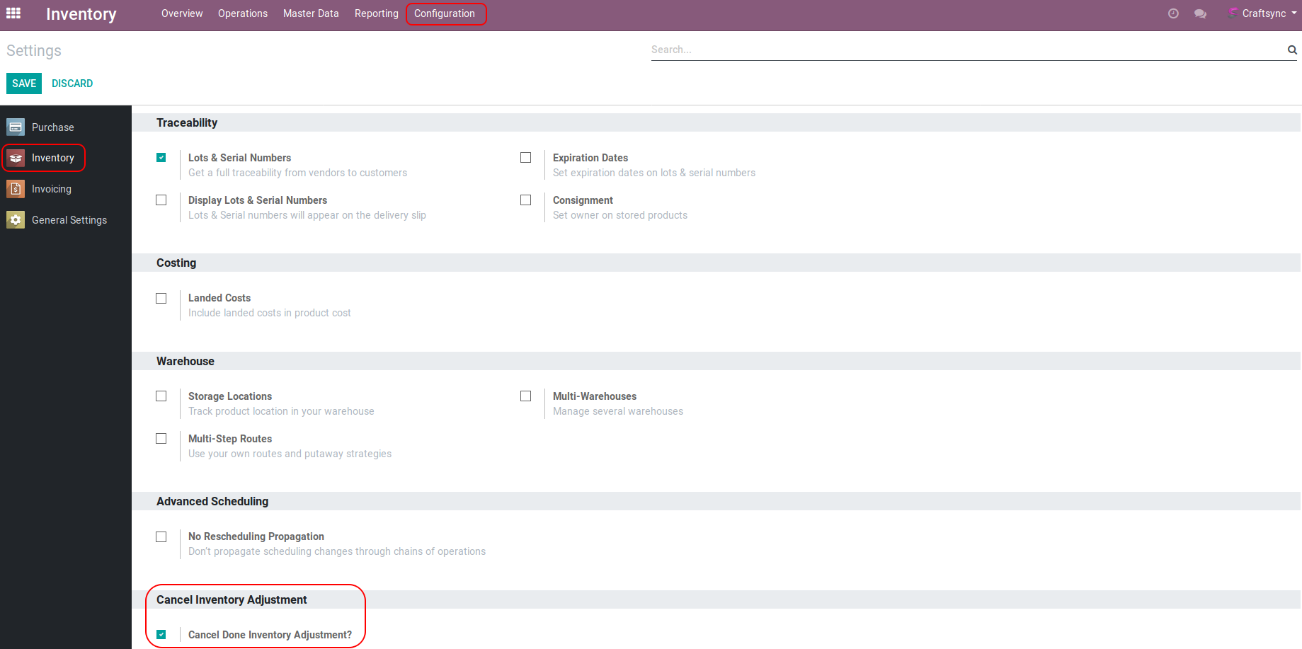 After installation of this application above configuration will appear in Inventory Configuration.