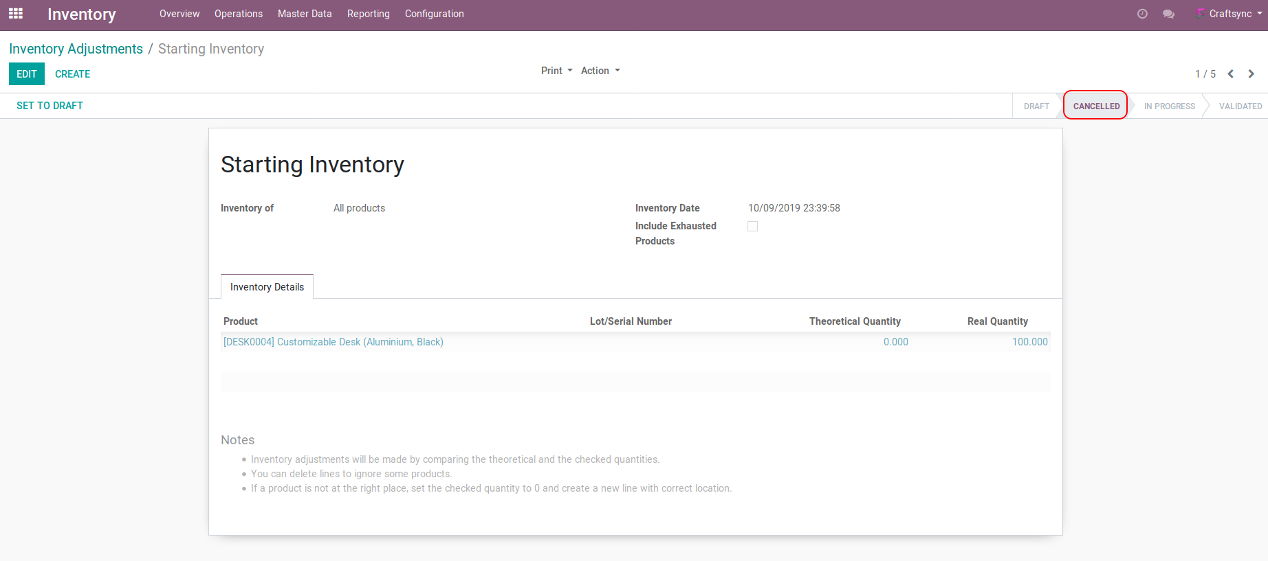 Inventory Adjustment on 'Cancelled' State.