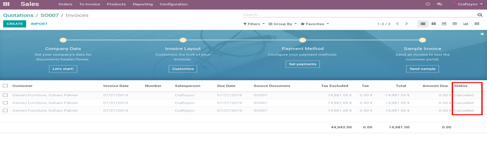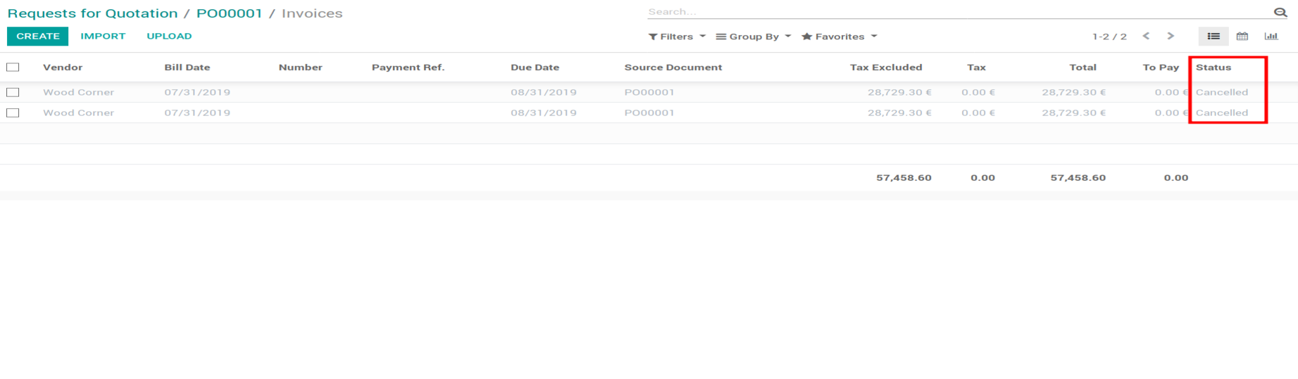 After cancelling invoice/bill, You can see the invoice is in 'Cancelled' state.