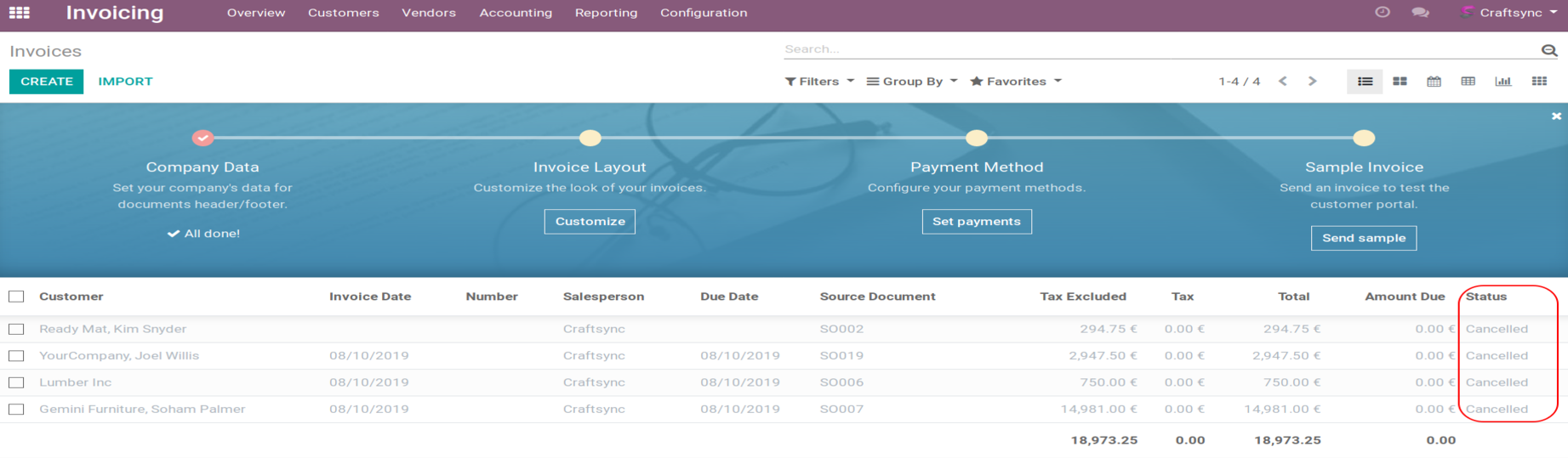 After cancel invoices it will in cancelled state: