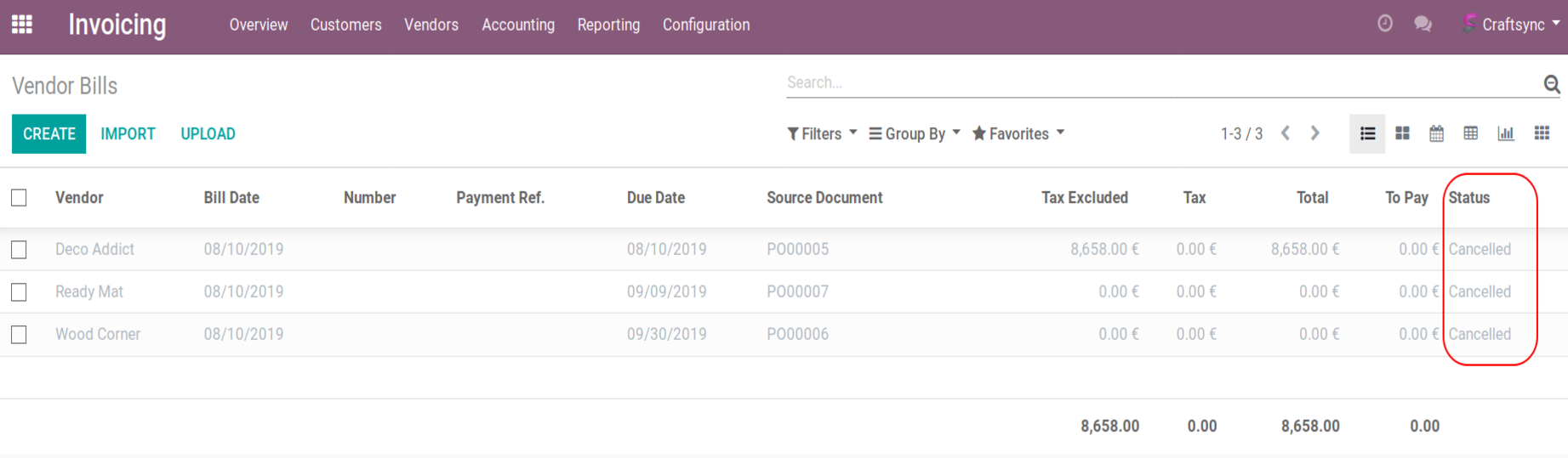 After cancel bills it will in cancelled state: