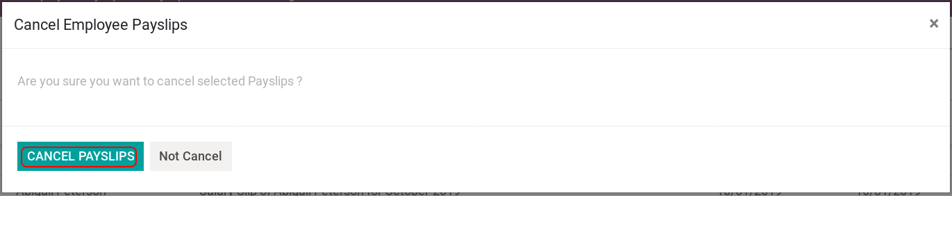 Below image will give warning for sure to cancel selected Employee Payslips: