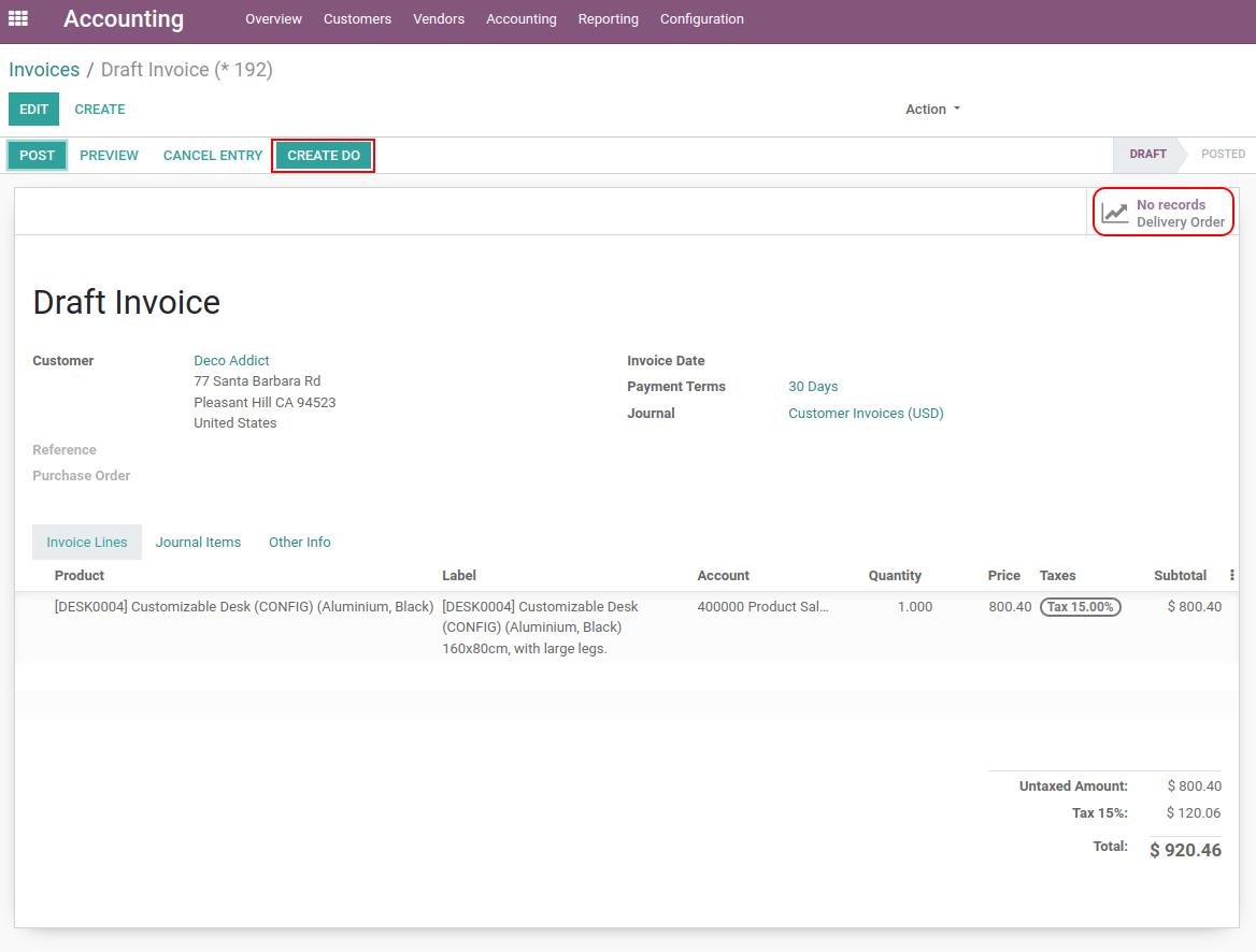 Create DO button available in invoice.