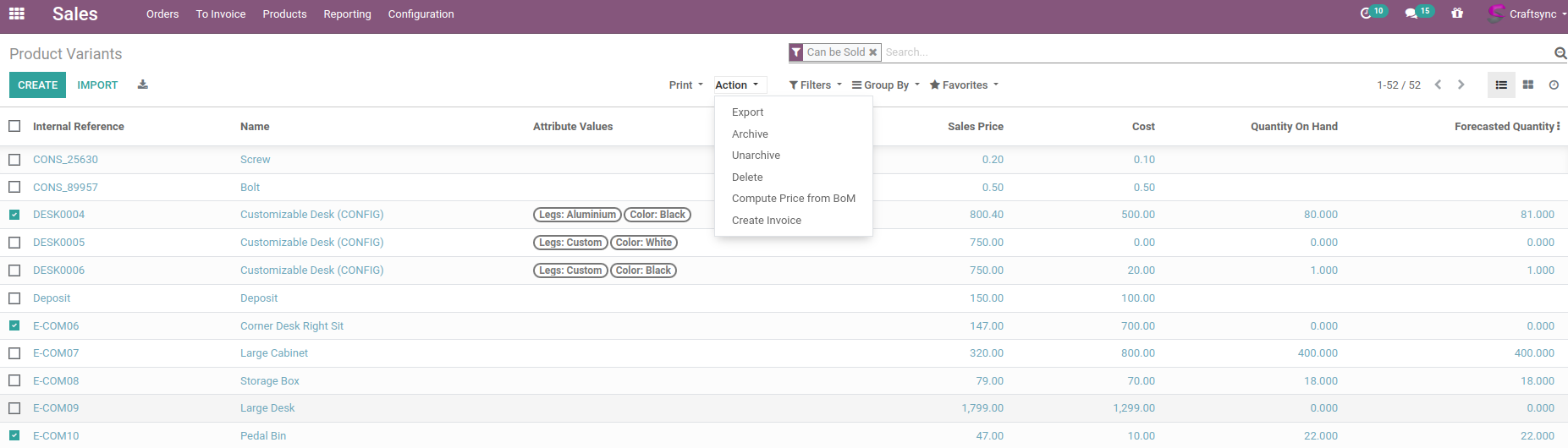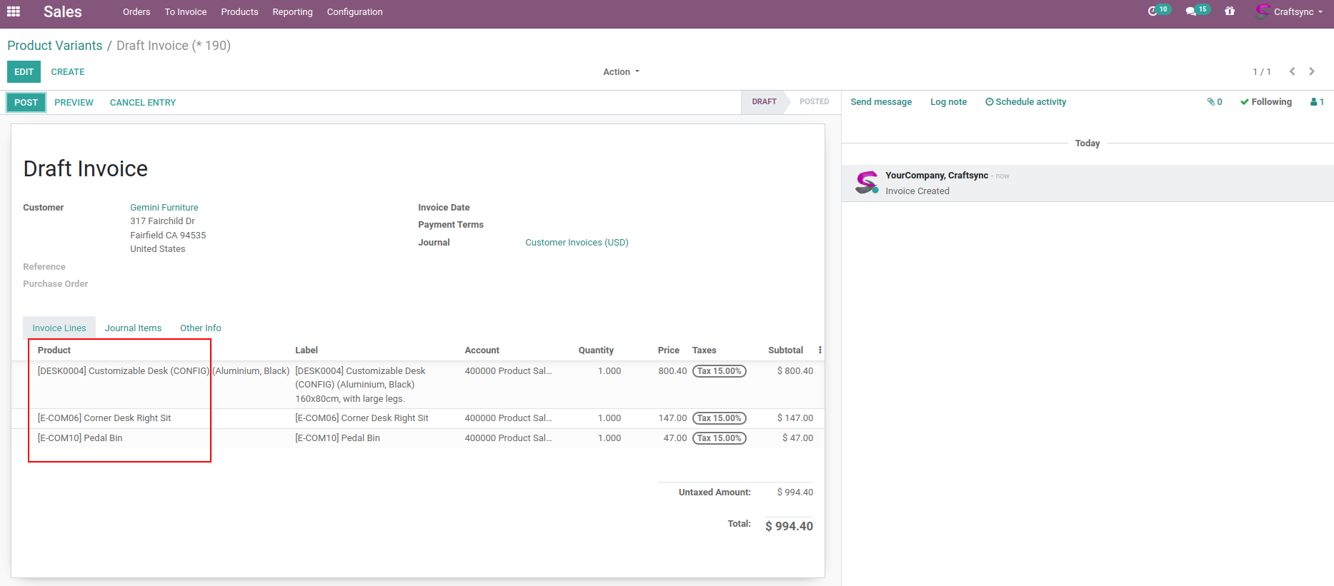 Create Invoice & Bill from Products