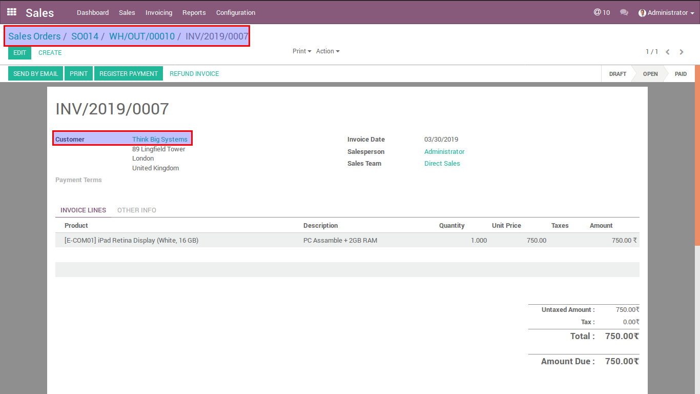 . Below image is Customer Invoice of Delivery when Invoice is create it will direct redirect to Invoice screen. Invoice is created on Open state based on configuration