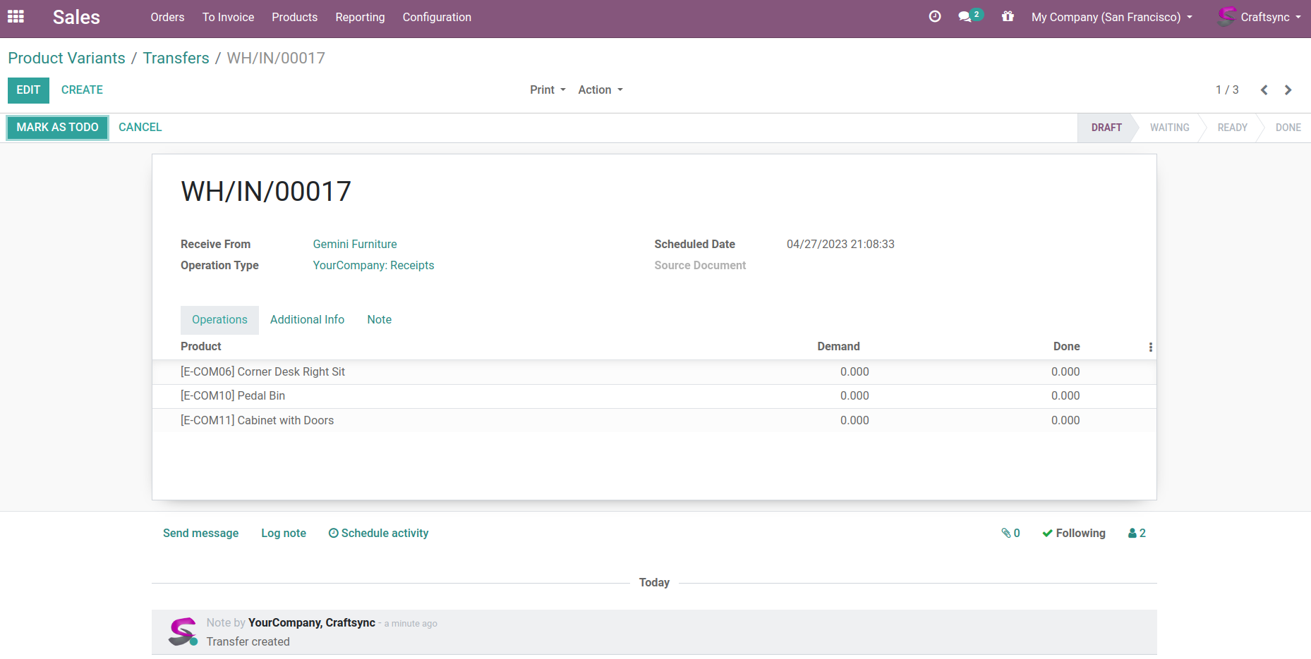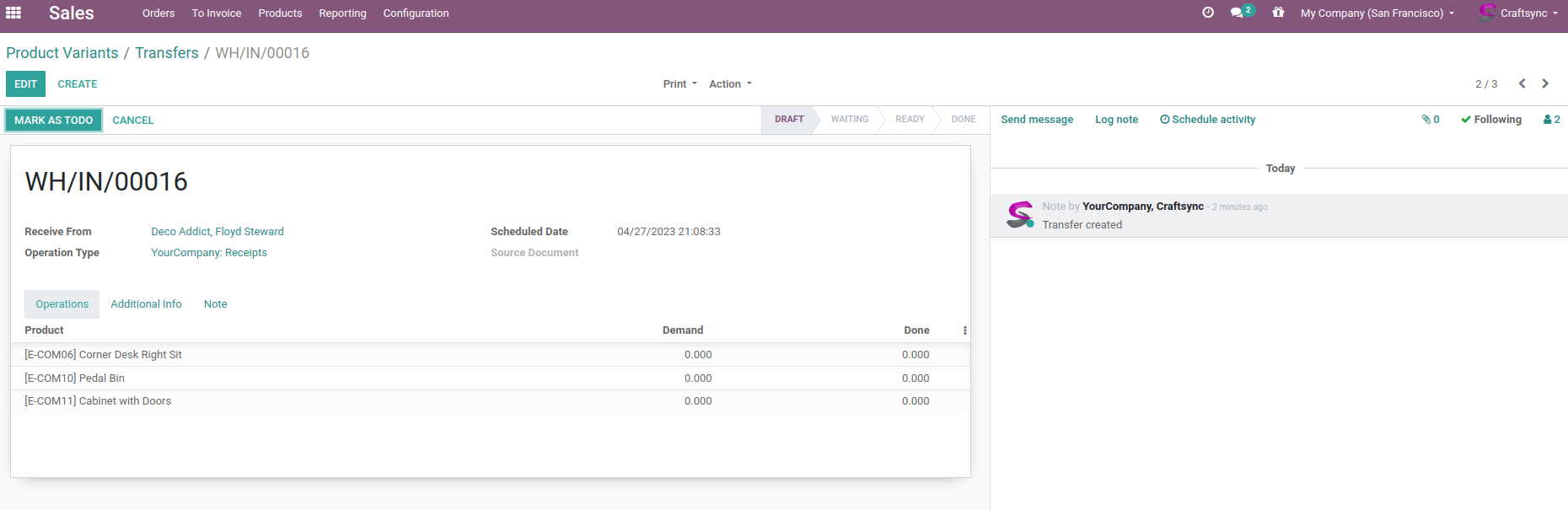Below is a second example of a recently created transfers based on the user's selected configuration.