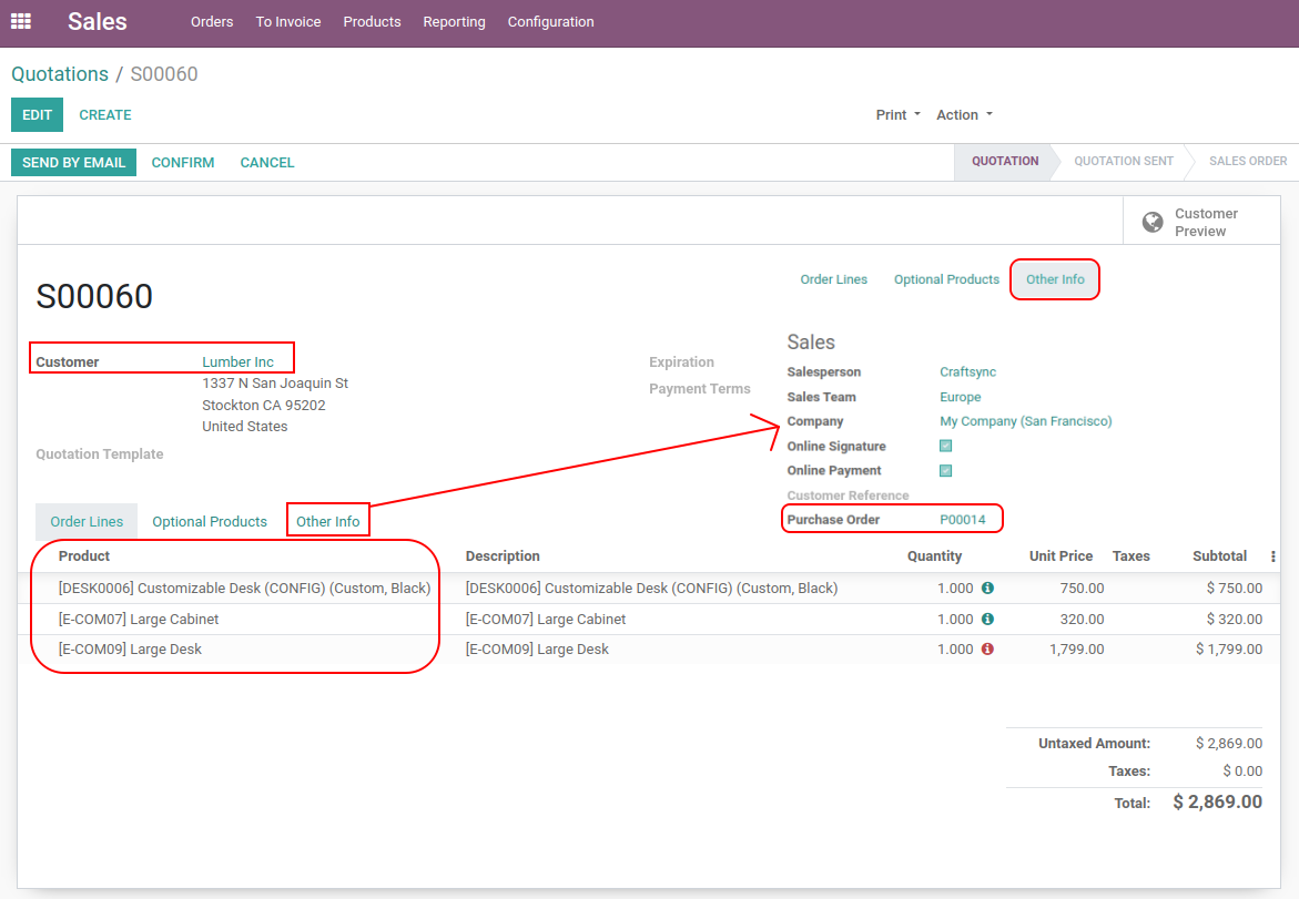 Detail view of Sale order and po's reference is also set in SO.