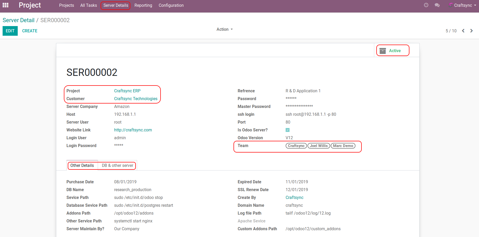 Above image is form view of customer's server access. user can track server by project and customer. Selected Team's user is only show this server details.