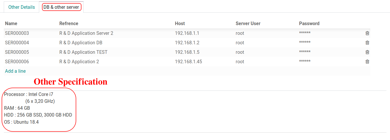 User can add child server like database & demo and test & backup server as ell. User can add specification of cpu anything configuration of server.