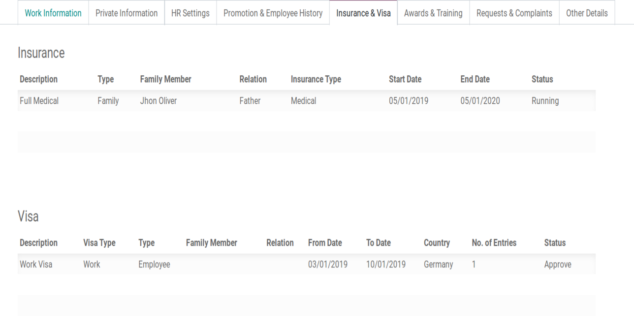 Above Image is display view of Insurance of Employee and his/her family's Employee.