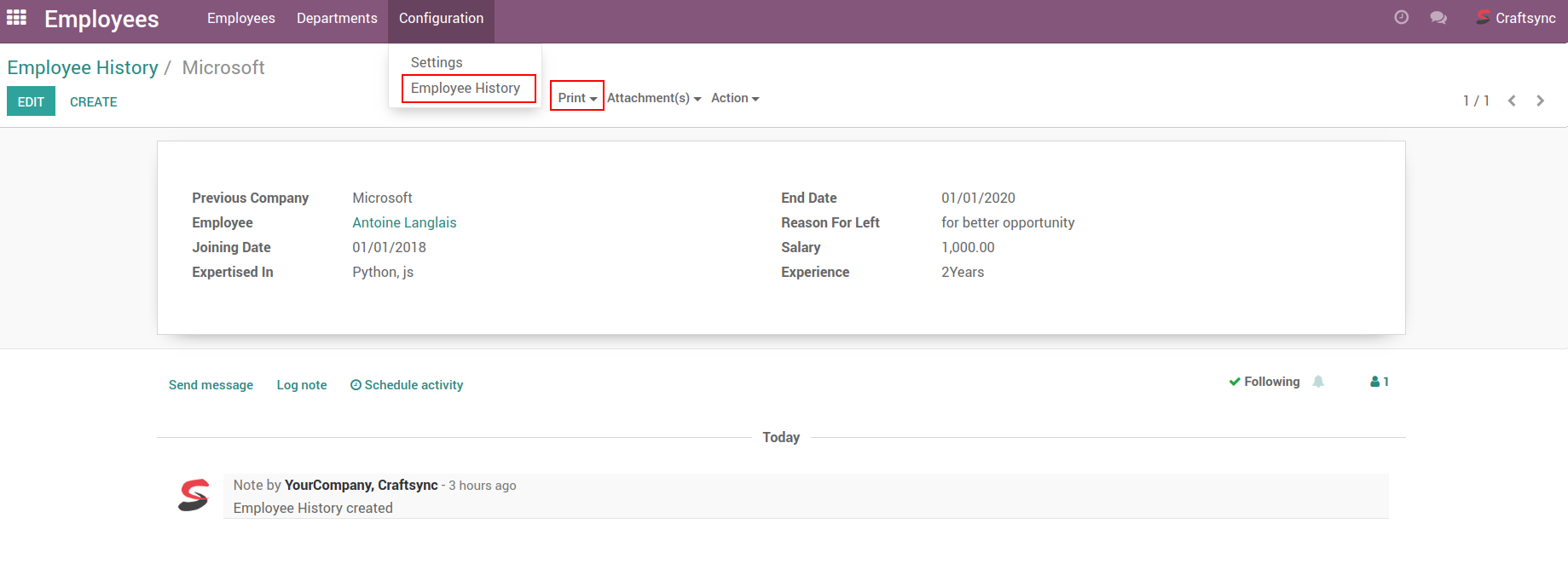 Employee's History