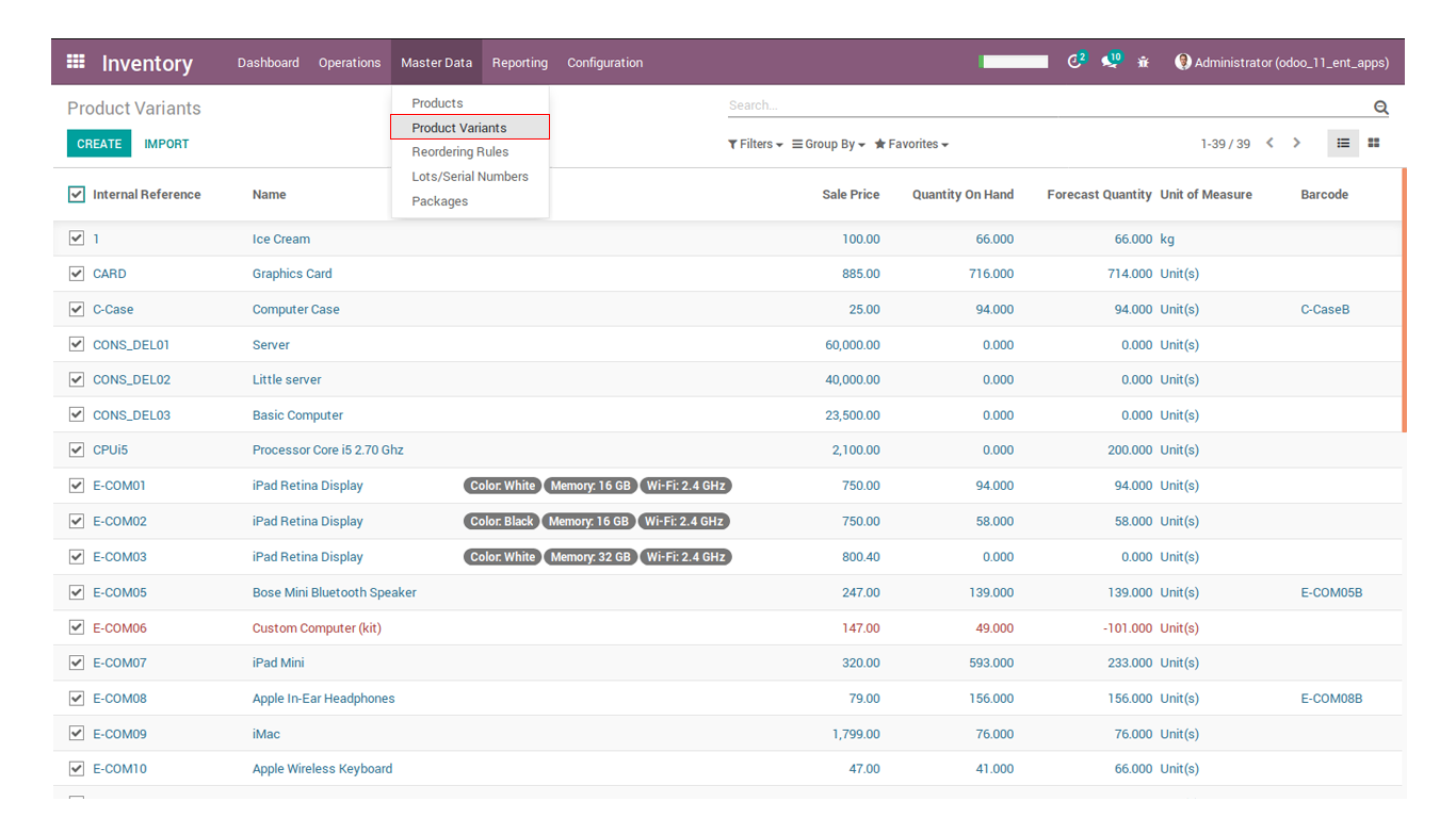 - Goto Inventory >> product variants. Select the varients and click on Action.