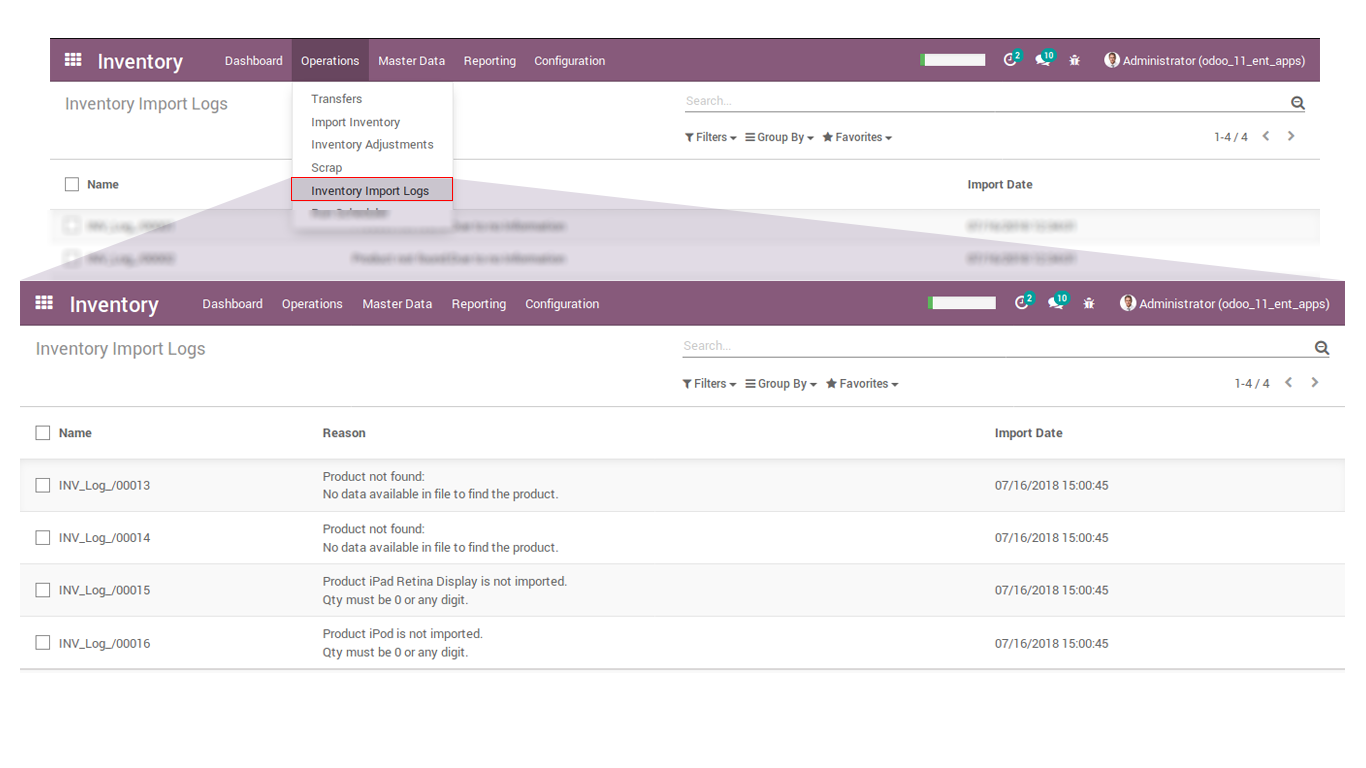 - You can see all the logs and errors when import inventory process gets some problem.
