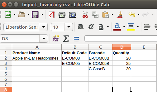 - This application provides facility to import csv, xlsx and xls file to create Inventory adjustments.