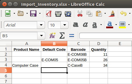 - If the file have some product with just name ,bacode or Default code then odoo will find those products from system and create an Inventory adjustment with given qty in file.