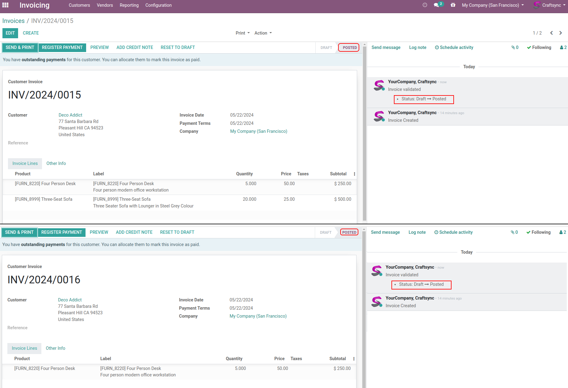 Here are Bill list view, having Two Invoice are in Draft state of partner name Deco Addict.