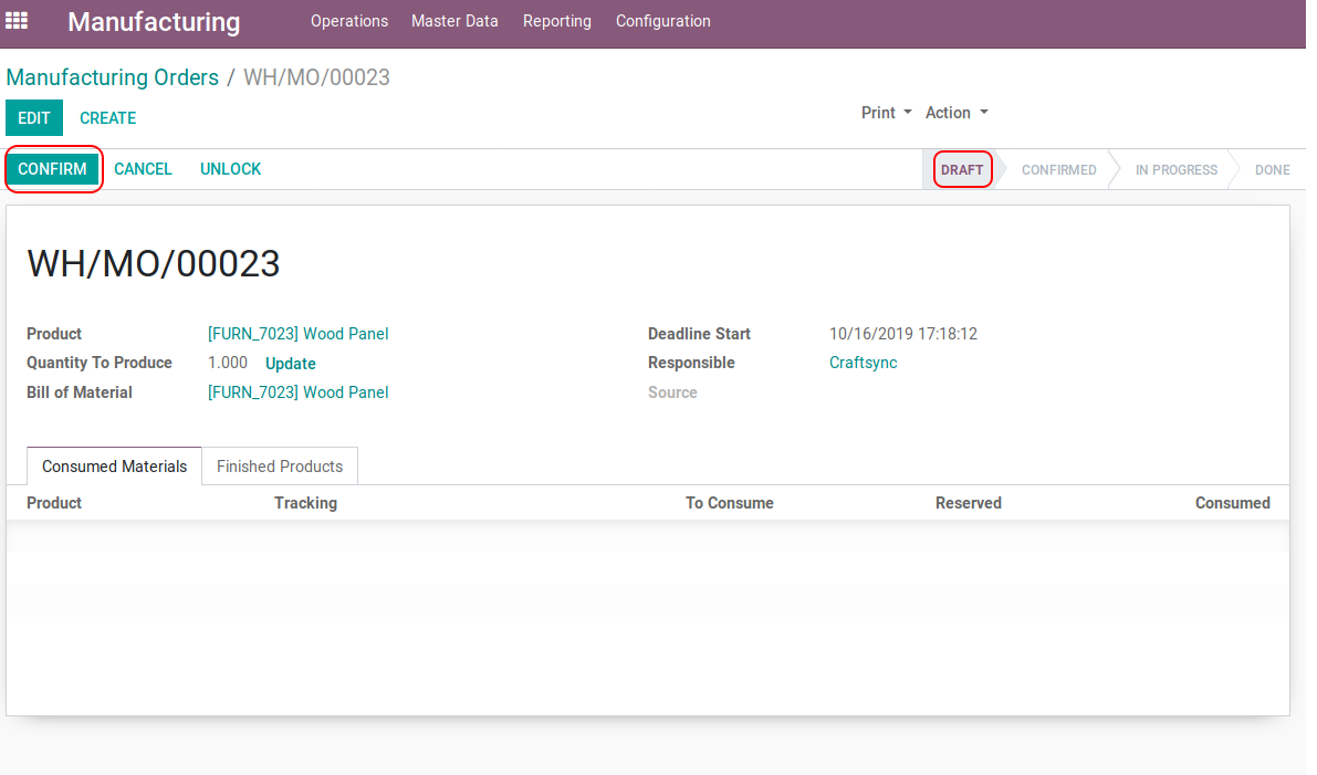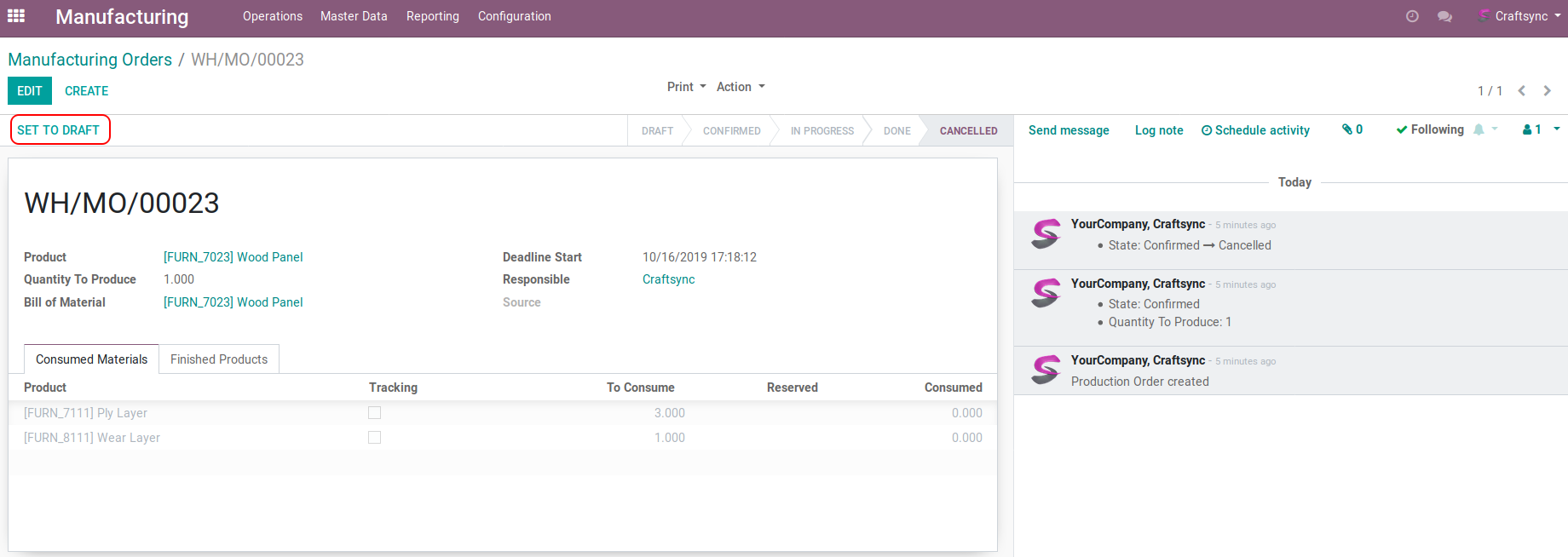 After set to draft button click, it will move to draft state. And confirm button will display.
