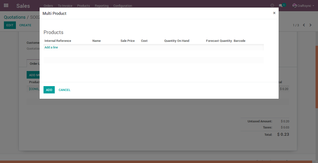 This Application helps to Add Multiple Products in sale, Purchase, Delivery, Invoice only on Draft(New) State.