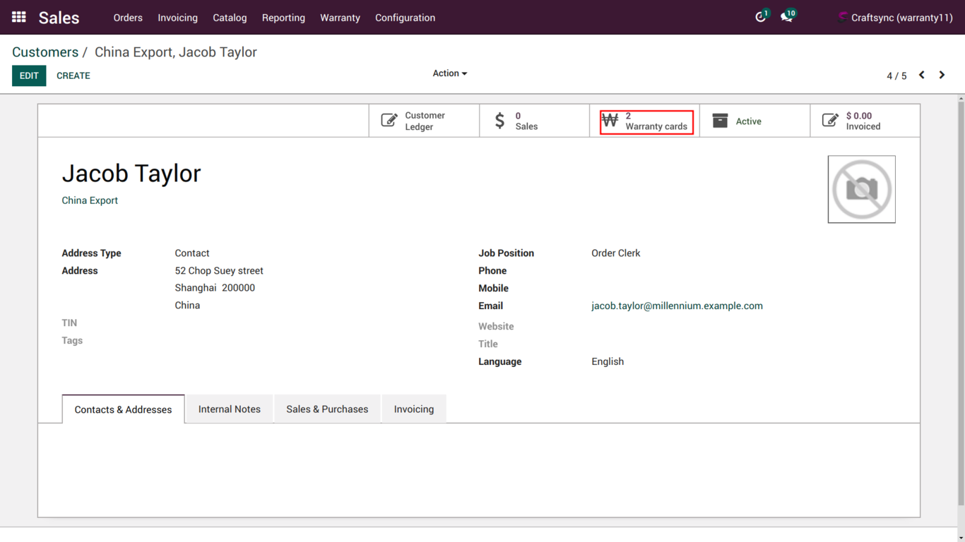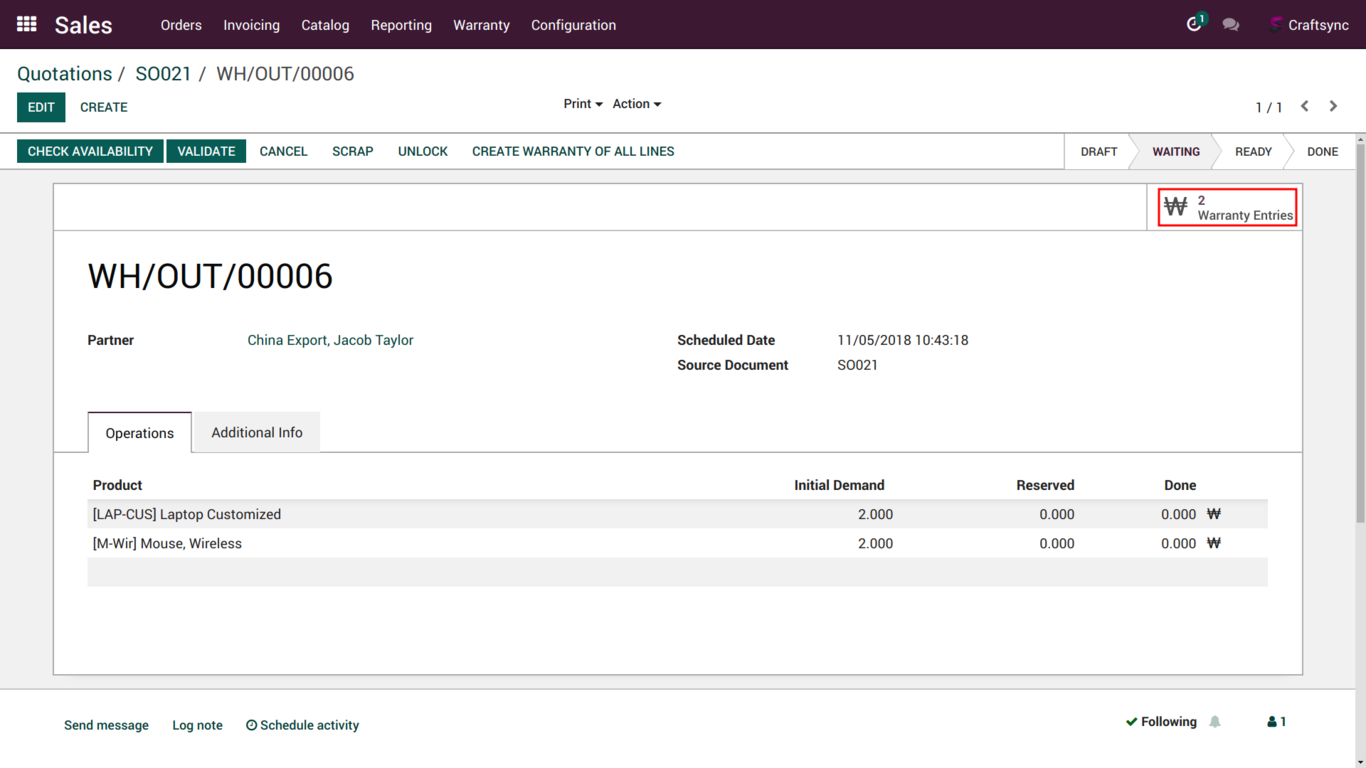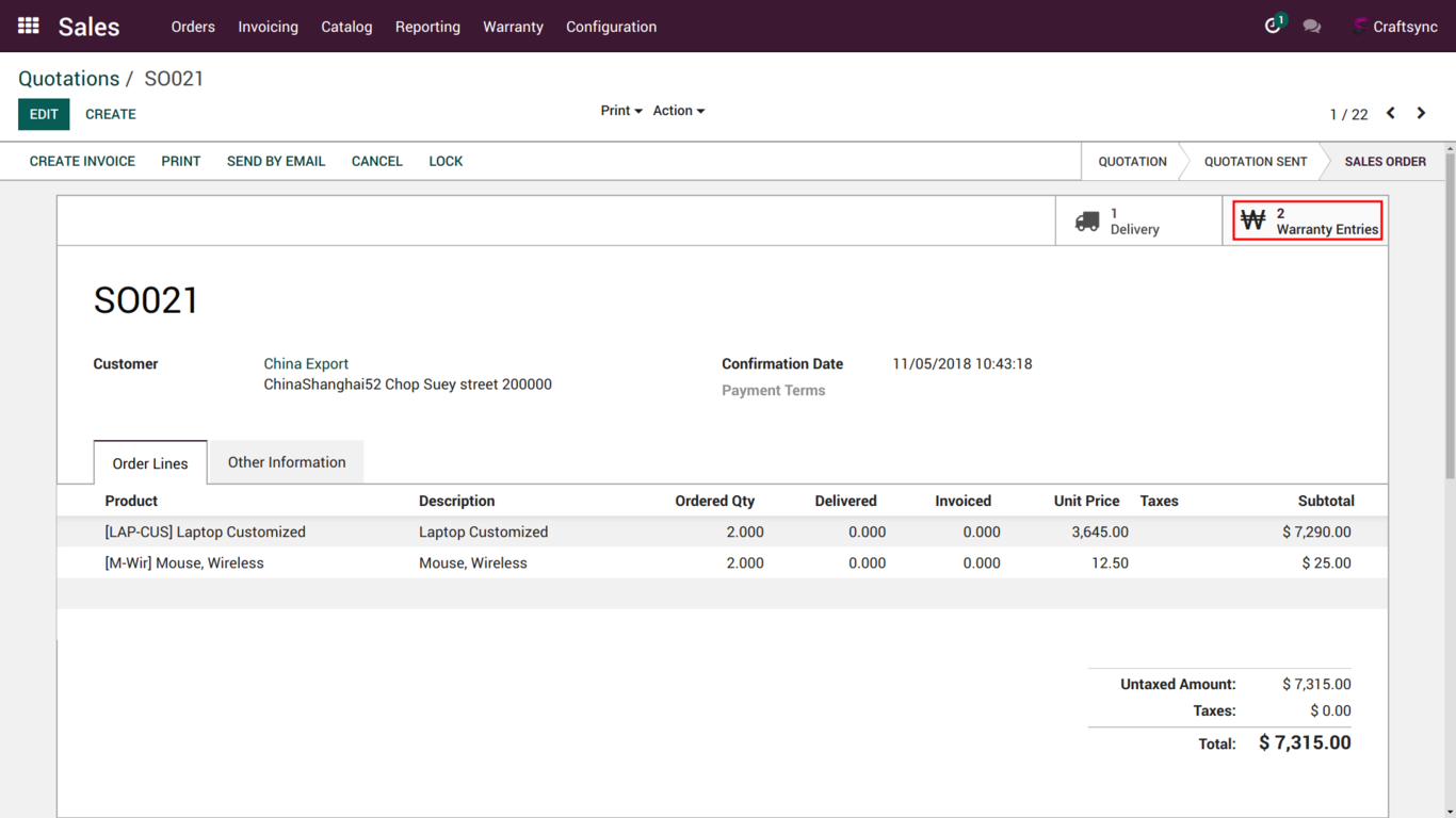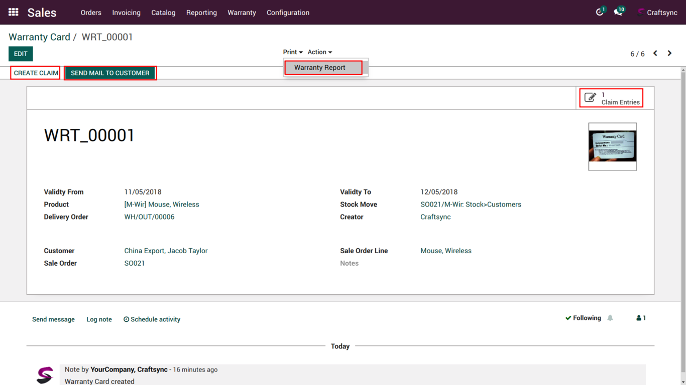 User can find Warranty entry from Sale order.