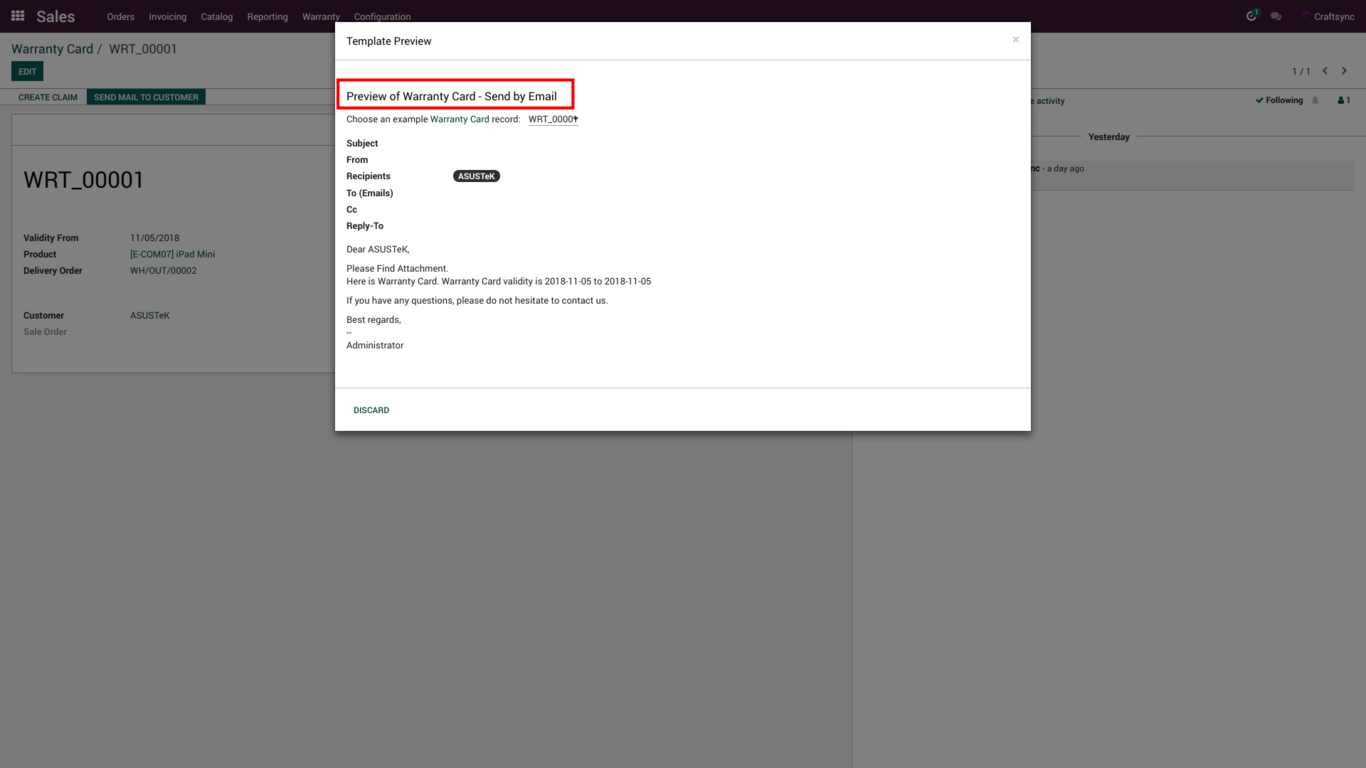 Above Image is for send mail to partner Image user can send from warranty card and claim as well and user can also preview of that mail here.