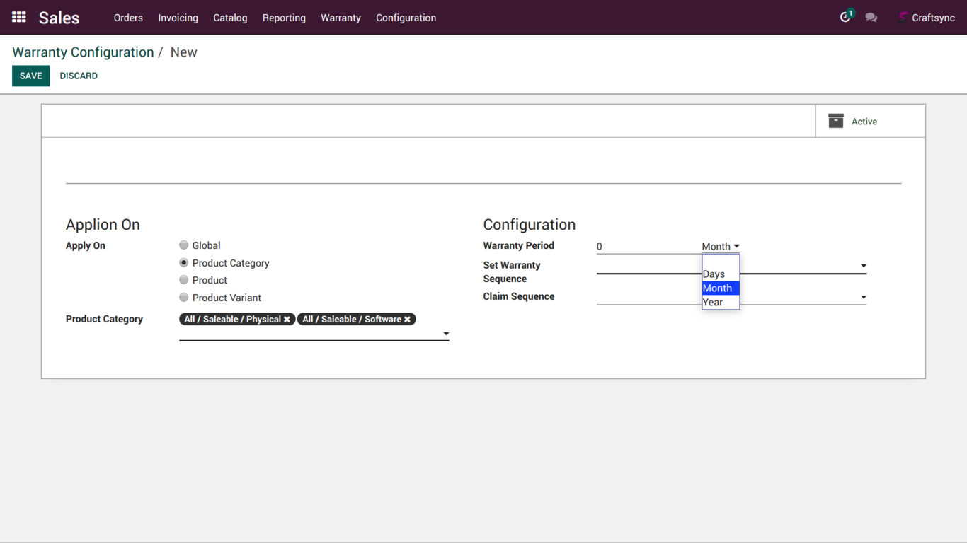 After installation of this application below configuration will appear in Warranty Configuration in sales menu.