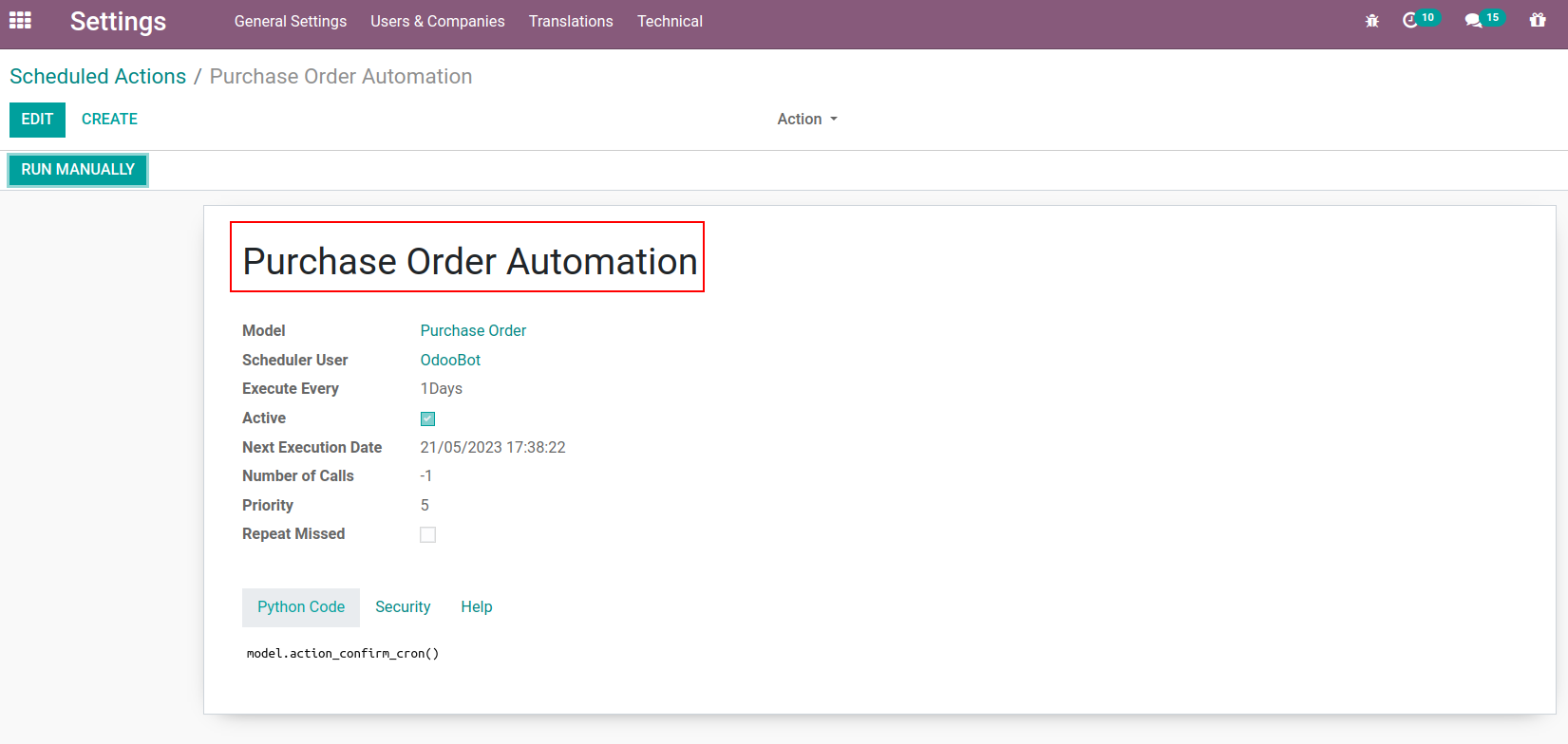 This Application helps to enable auto purchase workflow process of Purchase Order based on Schedule action(cron).