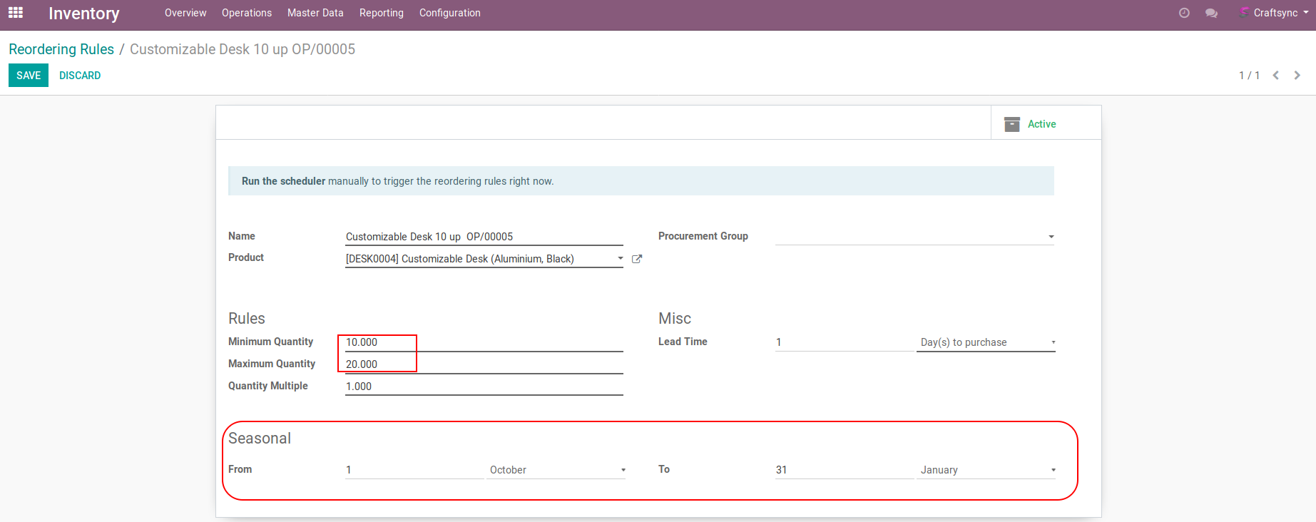After installation of this application above configuration will appear in Inventory Configuration for advance reorder configuration: