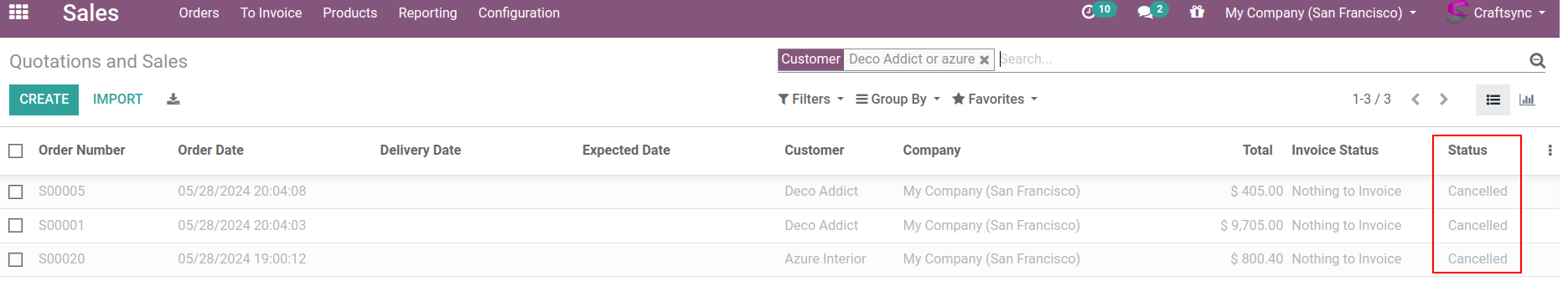 Here are Sale orders list view, having Three SO are in Diffrent state.
