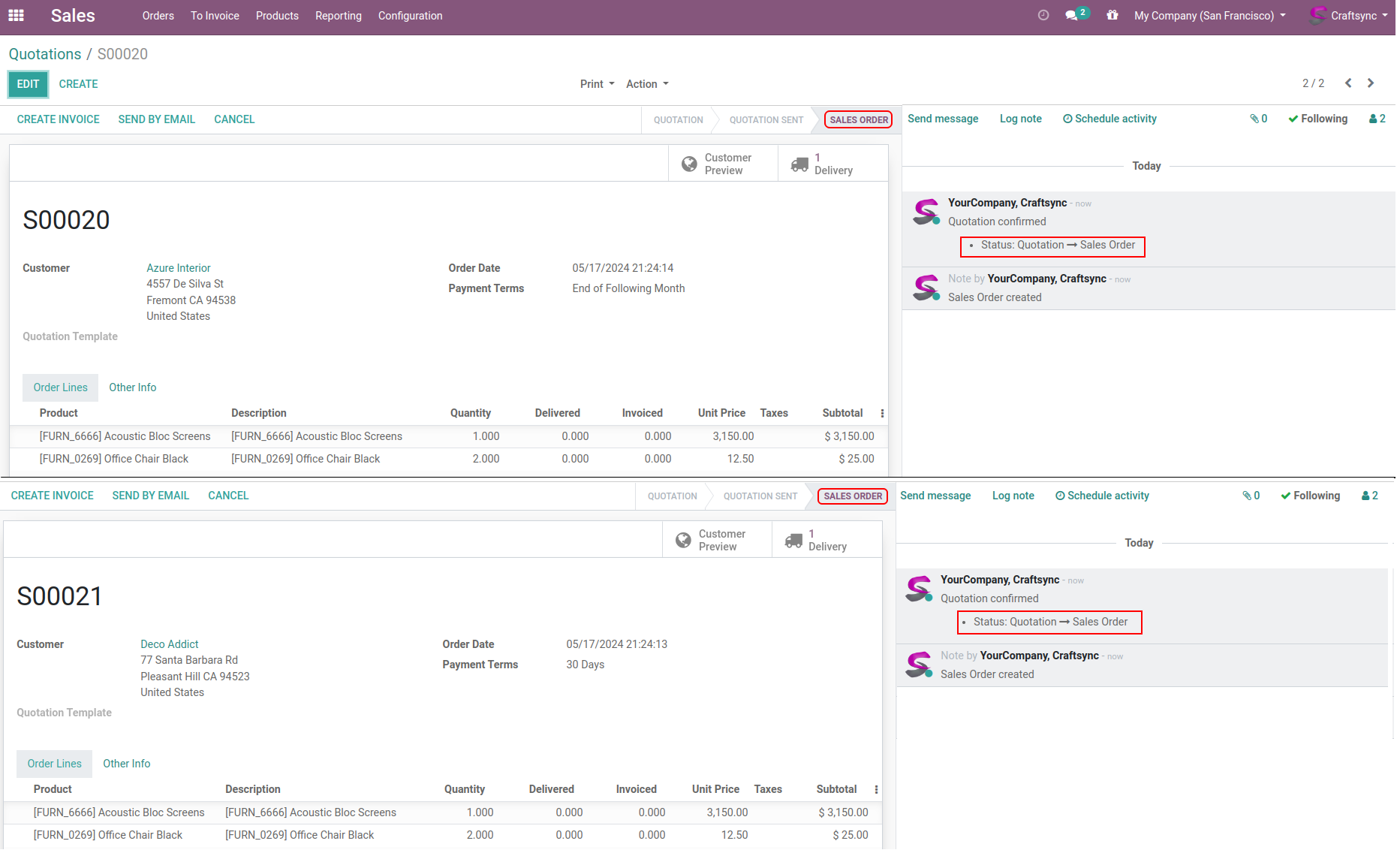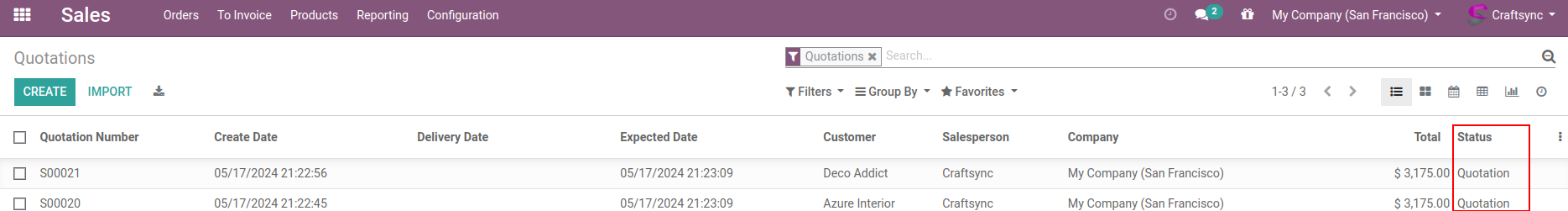 Here are Sale orders list view, having Two SO are in Quotation state.