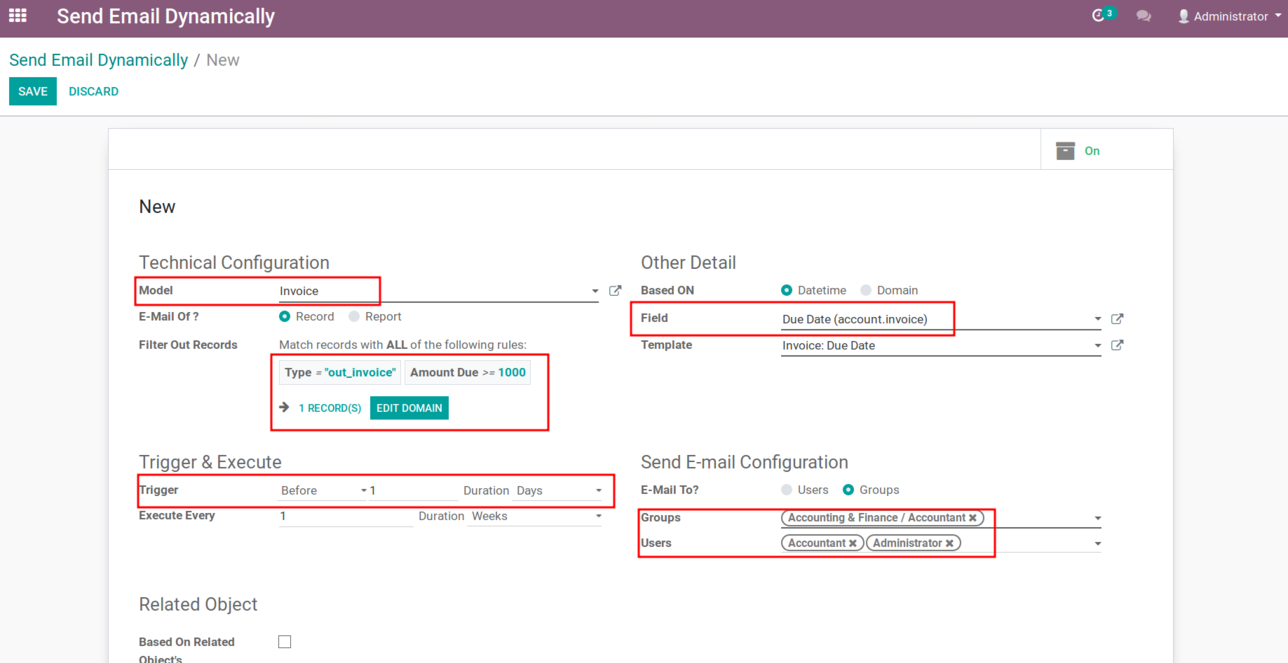 Above Image Is Example For Invoice object send email before 7 days based on due date.