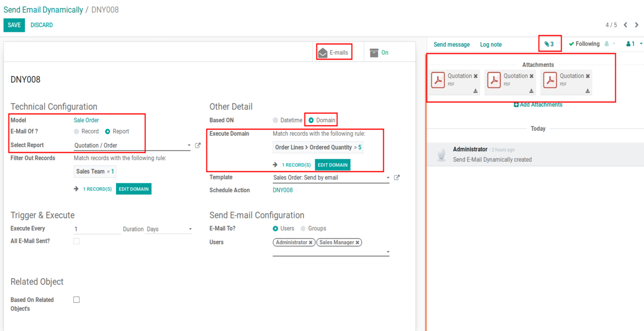 Above Image Is for Send Email of Sales Report of Selected Sales Team and It Execute only when Order's Invoice status is To Invoice. User Can Check Email and check all mails status and Email is sent or not, And User can check Schedule Action(Cron).