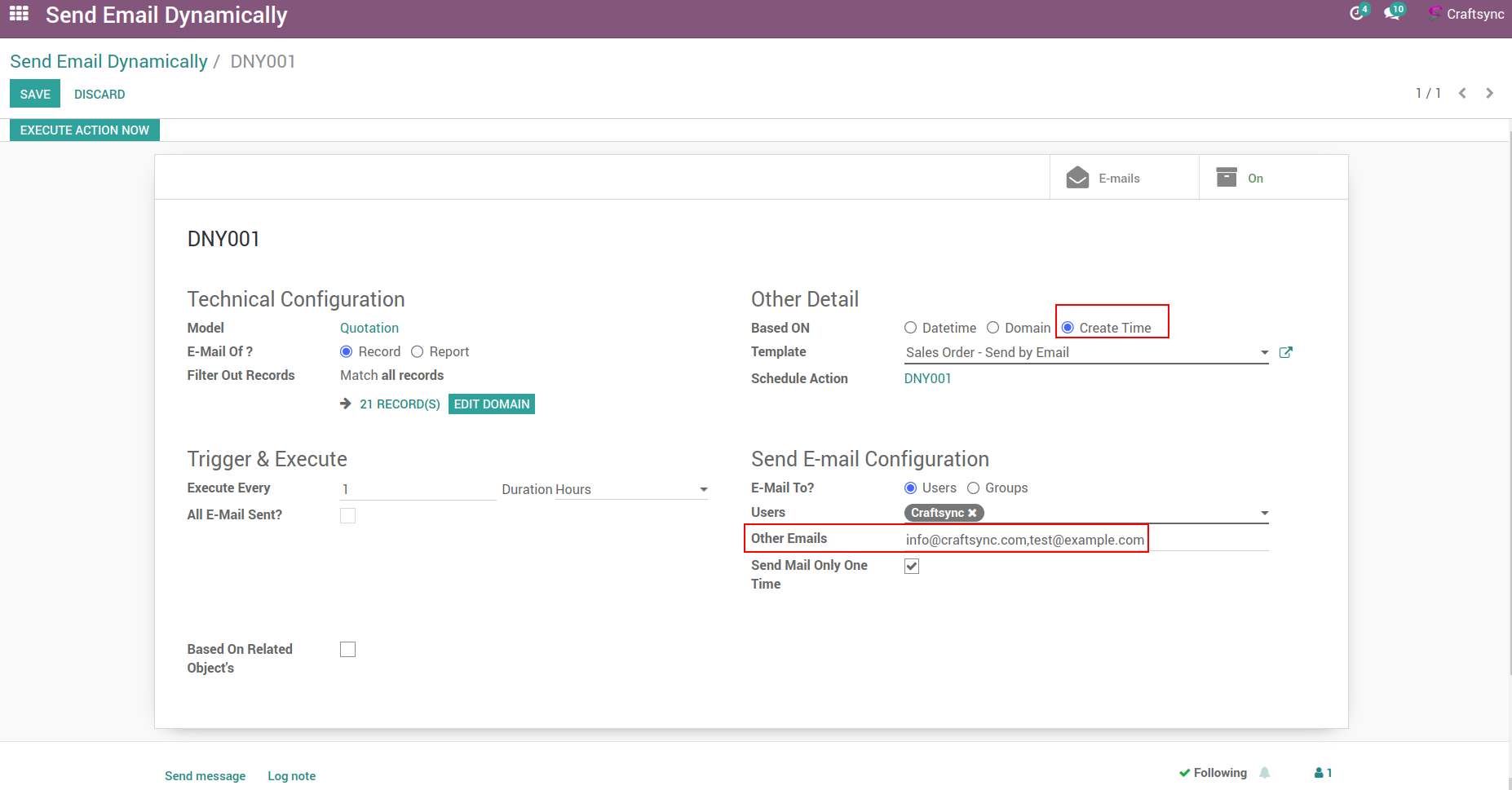 add other emails and send email when record is create.