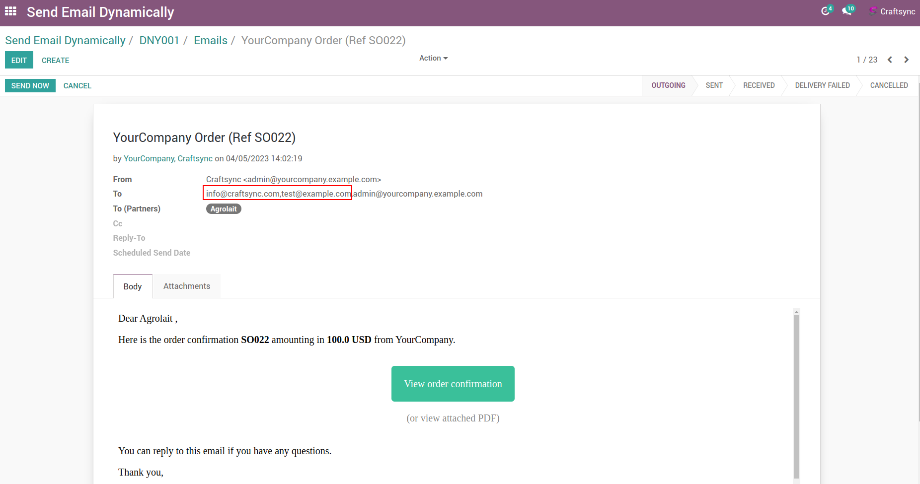 Send E-Mail Dynamically Extended